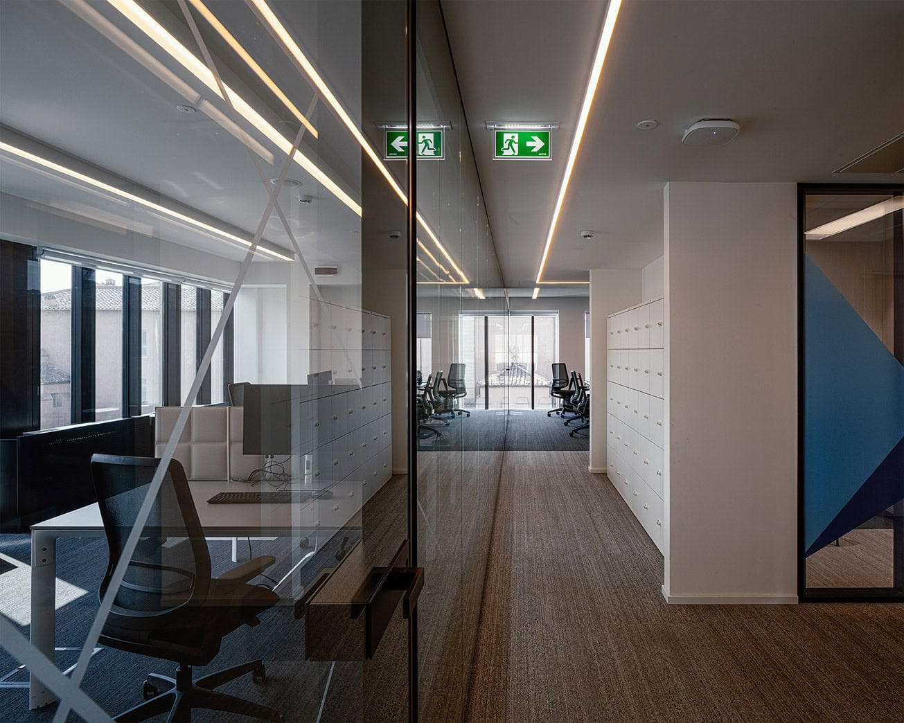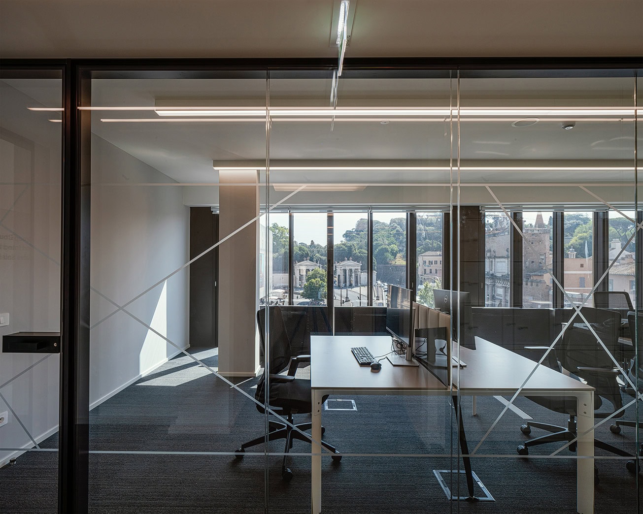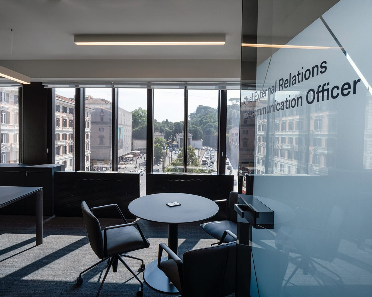 Grazie al ventaglio di competenze specialistiche e complementari delle società della galassia Progetto CMR International, l’intervento è stato gestito in modo sinergico ed efficiente in tutte le fasi della sua realizzazione: Progetto CMR ha curato la progettazione e la direzione lavori generale e antincendio, con il supporto di InFire, mentre a Progetto Design & Build è stata commissionata la realizzazione di oltre 4.000 mq all’interno delle “Torri Moretti” in Piazzale Flaminio, dove sono confluite oltre 300 persone delle società del Gruppo Tinexta nella Capitale.
